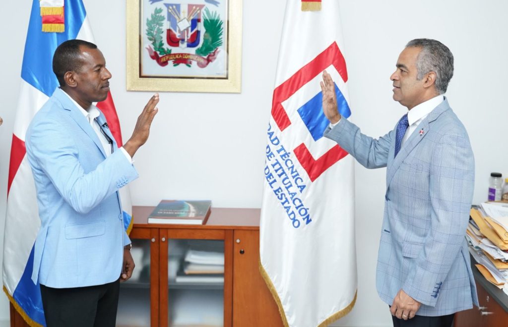 SANTO DOMINGO.- El ministro de la Presidencia, Joel Santos Echavarría, juramentó este miércoles al señor Duarte Méndez Peña, como director interino de la Unidad Técnica Ejecutora de Titulación de Terrenos del Estado (UTECT).